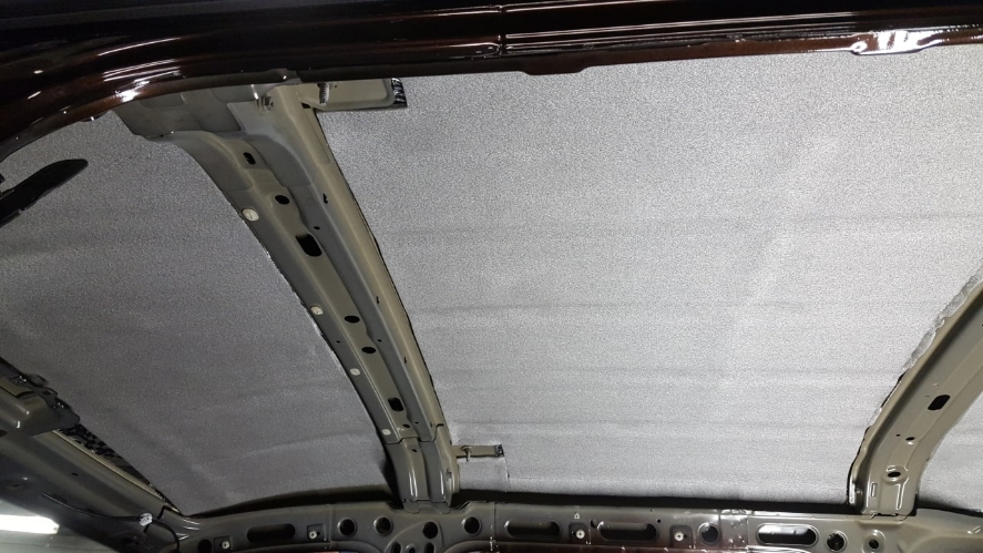 Начинаем шумоизоляцию с крыши. После демонтажа плафонов, солнцезащитных козырьков, накладок, над крышной полки, стоек, ручек, открывается огромная площадь из тонкостенного металла без какой либо заводской шумо и виброизоляции. Шумоизоляции крыши обязательна, т.к. это в среднем 1,5-2 метра тонкостенного металла, который над головами водителя и пассажиров на ходу начинает вибрировать и издавать высокочастотный гул (наподобие динамика большого размера).