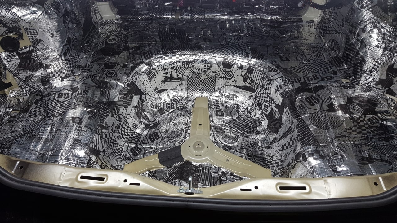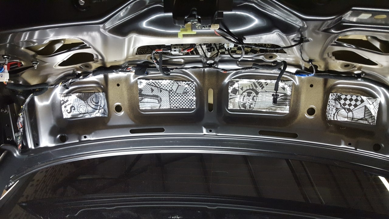 Не забываем и про крышку багажника. Виброизолятор + шумопоглотитель.