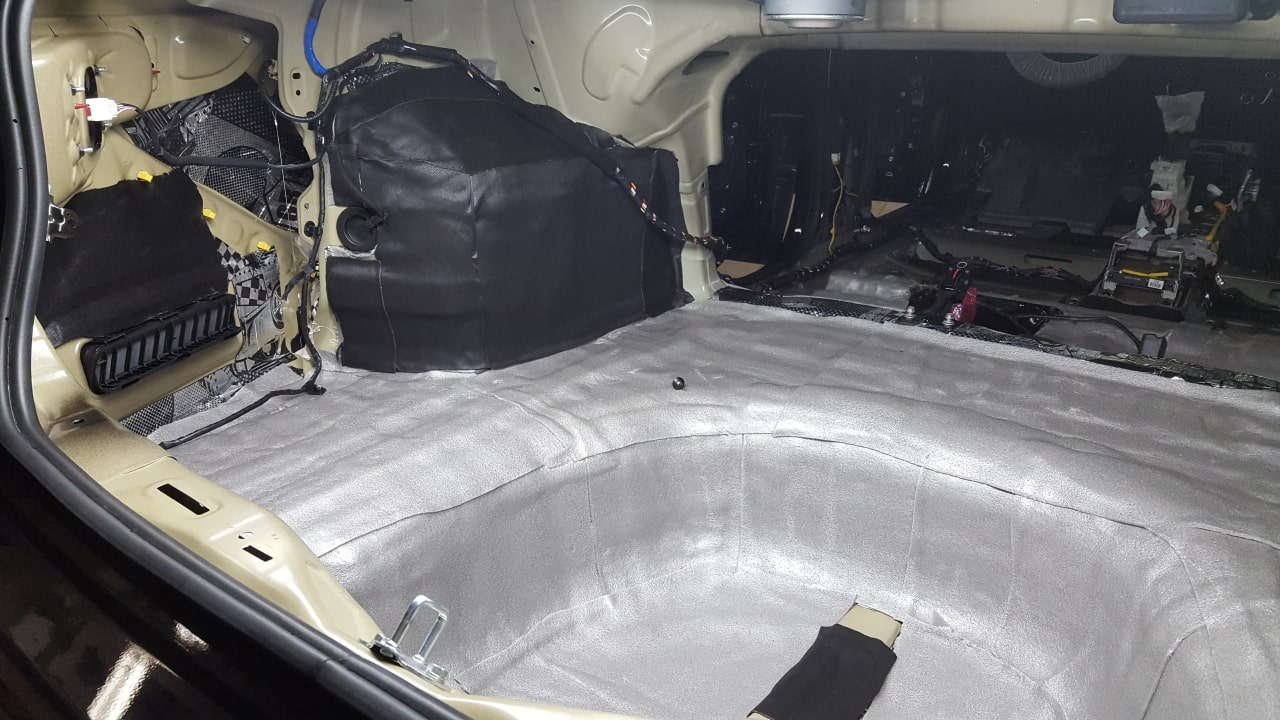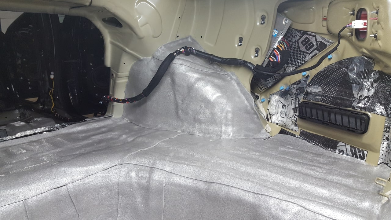 Колесные арки укатываются более толстым материалом GB. Пол багажника облачается в более легкий материал GB.